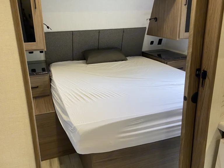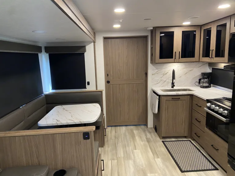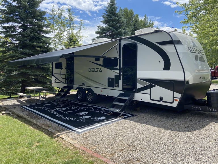 This camper is at Holiday Park Campground in Traverse City ready for you to come and stay! Nightly rate includes campground site fee.Our Delta Alliance offers comfort as your home away from home. It offers a queen bed in a private bedroom including it's own door to the outside. Inside the second door you will find a bunk with 2 double sized beds, big enough to sleep 2 in each bed. The U-shaped dinnet offers seating for everyone along with the theater seating to sit and relax.The kitchen is equipt with the basics for eating and cooking along with a coffee pot.No detail was spared in the making of this RV... soft close drawers to avoid excess noise, a large pantry to keep all of your food. Smart TV and solar panels so you can run camper basics like the fridge without having a full hook up! Camper also has an outdoor cast iron cooking stove and griddle and an outdoor fridge!Camper has 2 kitchen towels, 8 bath towels and 6 beach towels provided. Each bed has a mattress protector on it to help keep the beds clean and in good condition. Pillows and sheets provided. What's included• 2 kitchen towels