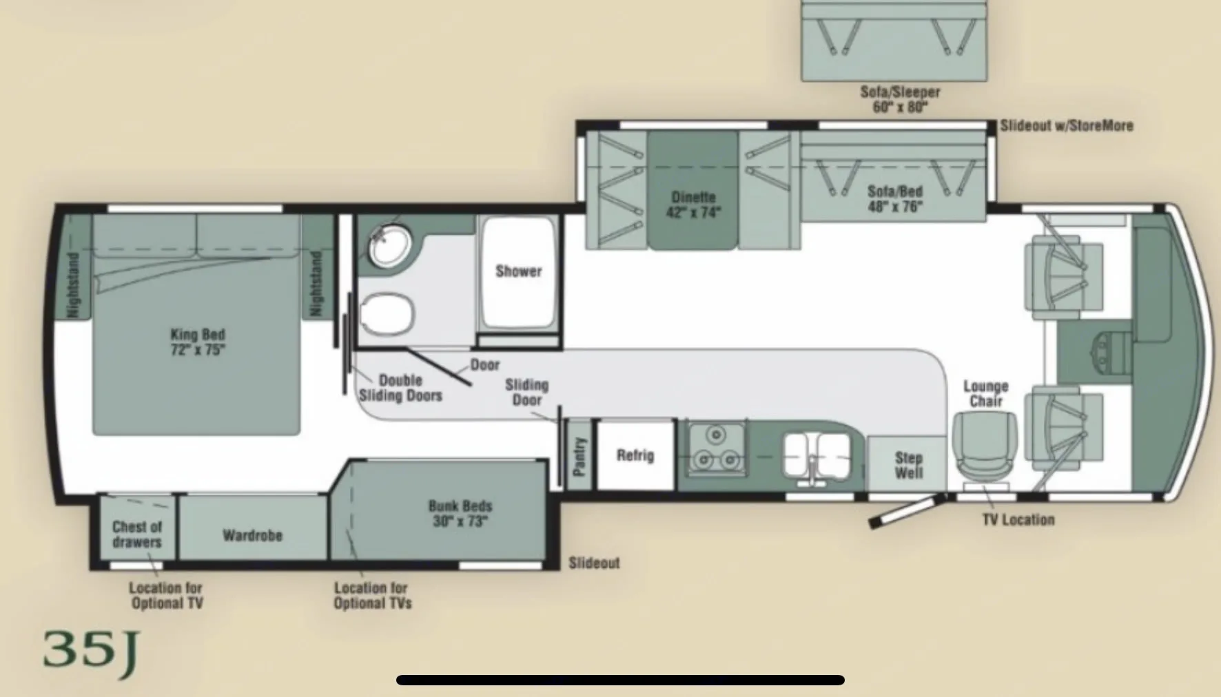 Your Home Away From Home on WheelsClass A RV – Fully Stocked, Cozy, and Ready for AdventureImagine waking up to the smell of fresh pine or ocean breeze, sipping your morning coffee under an EZ-Up shade while the kids stream cartoons inside. This isn’t just an RV—it’s your rolling getaway, fully stocked and ready to make memories.What’s Inside? Everything You Need—And Then Some: