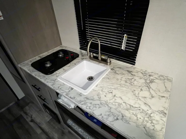 This brand new Coleman Lantern is the perfect for a cozy getaway. Fully equipped with a queen size bed, two burner stove, sink, fridge and microwave. The dining table converts into an additional bed as well. In the bathroom there is a closet to hang your clothes in. There is an Air conditioner to keep you cool and an electric fireplace to warm you up. There is plenty of lighting inside of the trailer also.Without hook-ups or a generator (dry camping) the following will NOT work: Fridge, AC, Heater, Water Pump.