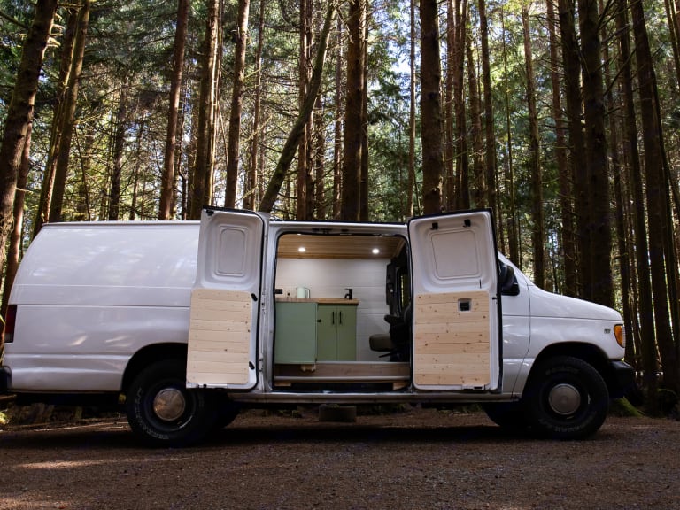 After a very thorough search through Outdoorsy for our honeymoon, we found Conor’s Ford E250. Conor’s Van was a home away from home. We hired this beauty for 4 weeks travelling over 4,000kms across the US and Canada and it was perfect. Conor’s attention to detail when fitting out this van is evident in the layout, electrical and fit out. Things we particularly liked were the electrical fan, reversing camera, bed, interior lights and bench top finish.