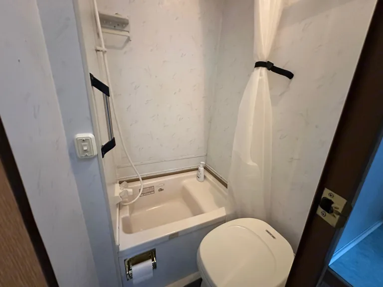 Living & comfortRoomy bathroom with hot shower, flush toilet, and sink