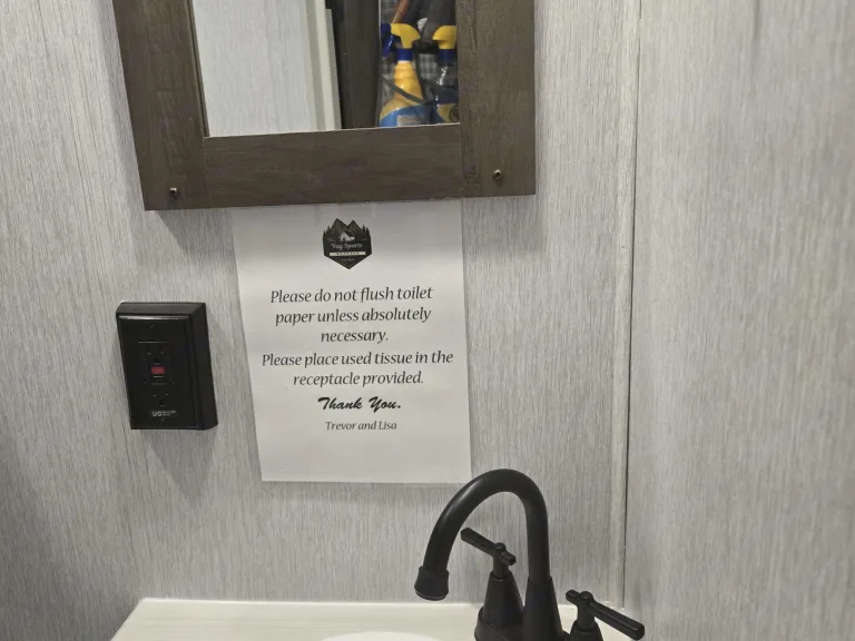 TV & Microwave: The 27-inch Samsung smart TV and microwave only work with shore power (30-amp hook-up) or the generator running—not on battery alone.