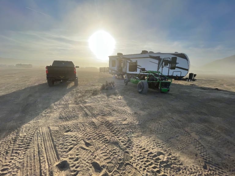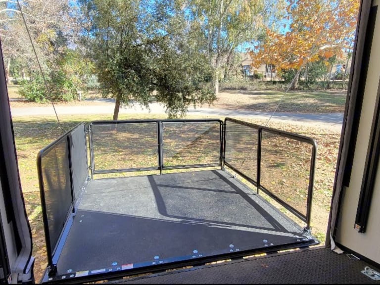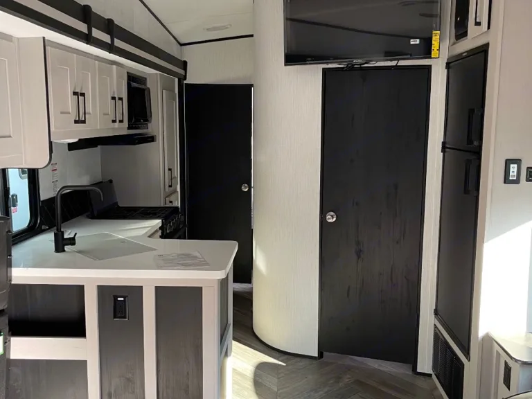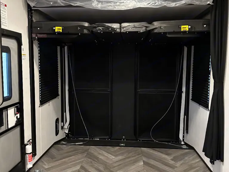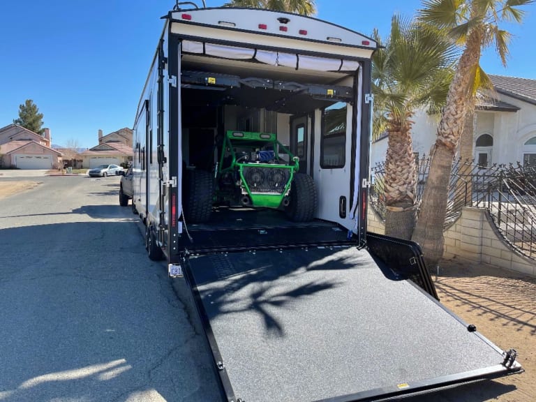 The ultimate floor plan with modern white interior, tall ceilings and high-end residential touches to make you feel at home.Live, camp, play with the newest toy hauler in town! built with versatility this modern toy hauler offers space and comfort. Load your desert toys, or go to the beach and lounge in the party deck as you watch the sunset!Don't have a vehicle to tow? no problem we offer delivery and set up (convenience fee applies)You'll have the largest kitchen countertops and storage than any other toy hauler, and the garage has a fuel- and oil-resistant diamond plate TPO rubberized flooring so that you don't have to worry about spills with your power toys. The three-zone JBL audio system can be used when you want to play some music for the group, and you'll even be able to play your music outside with the two JBL exterior marine-grade speakers. Each unit has also been prepped for cable/satellite, so you'll find it easy to add some entertainment.Specs: