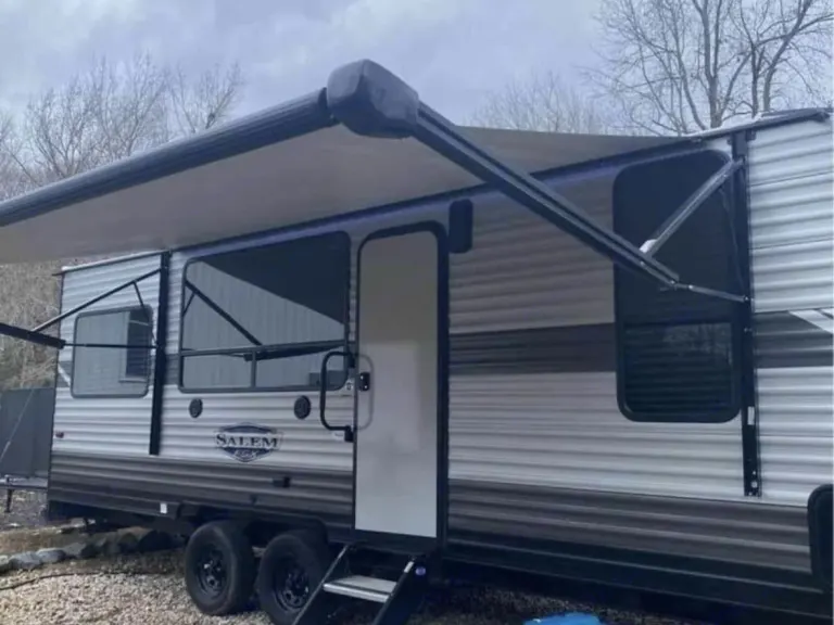 Our toy hauler/ trailer is the perfect home away from home! It sleeps 4-5 comfortably. There is a queen bedroom with 2 large closets and above/ below bed storage. The back couches are single beds or can be converted to a large king size bed with large storage cabinets above. The back ramp can be converted into a lovely fenced deck/ play area. The back can hold all your toys including dirt bikes or even a golf cart! The camper requires 30 amp service and provides water, power, sewage and cable/ Wi-Fi tv in the living room area. The camper has a large power awning with built in speakers and lights. There is an outdoor shower and underside storage areas. The kitchen/living area provides stainless steel appliances and a very large freezer/refrigerator. Features include a tv/ Bluetooth hookups for indoor and outdoor use. There is also a digital thermostat for heat/ac and an electric fireplace. The kitchen is fully equipped and has everything you need for your morning coffee to evening grilling. We’ve included a stovetop outdoor gas grill that attaches to the trailers outdoor gas hookups. Propane must be refilled. NO smoking inside! You just empty the gray/ black water tanks. What's includedFresh linens, cutlery and kitchen amenities all provided. Towels and camping chairs can be provided upon request for an additional $20 fee. Other things to noteNo smoking inside the camper. Please treat our camper with respect.