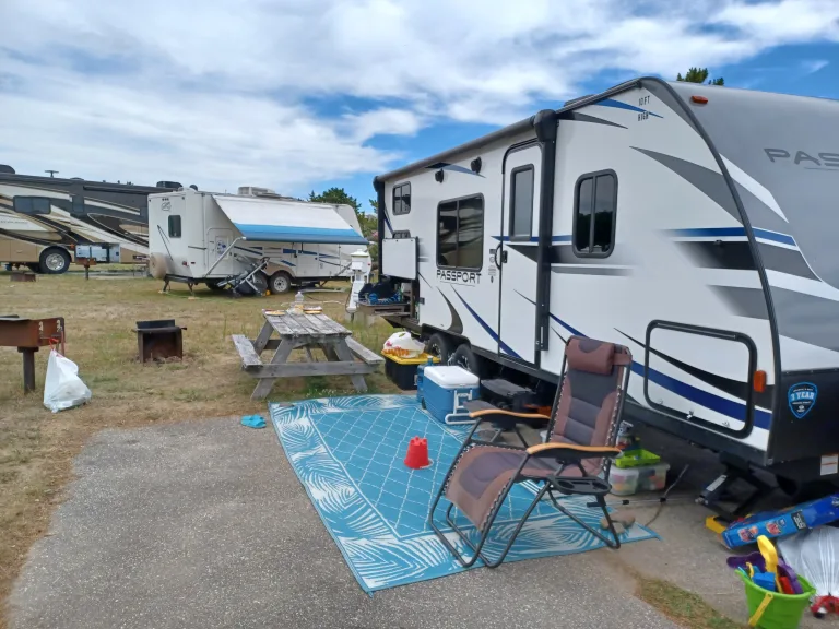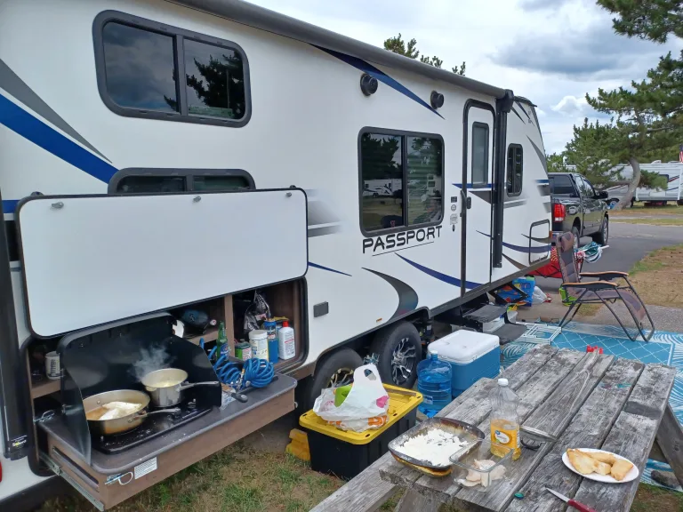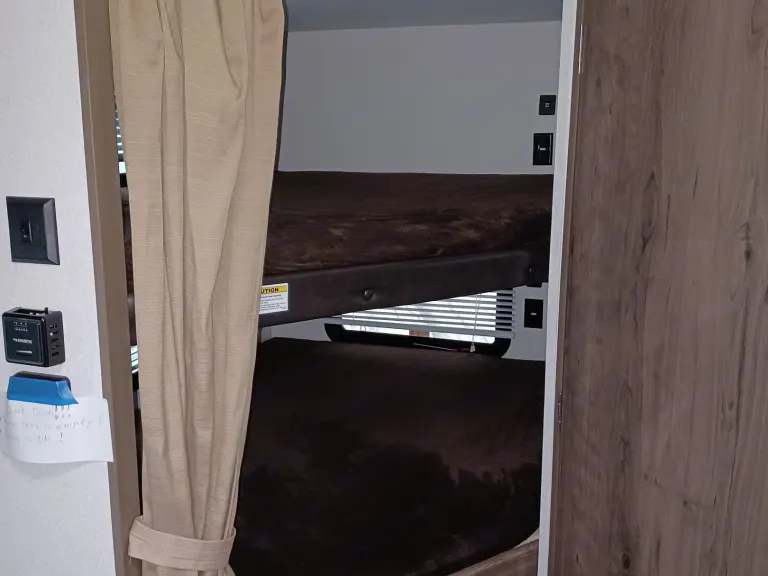 Our 25’ KeyStone Camper is Super Clean and Comfortable. Sleeps comfortably 5 adults. Two adults and up to 4 kids would be super comfortable as well. It is equipped with Queen Size front bed with a curtain for privacy. Two XL bunk beds with a private entrance curtain are available on the backside. Each bunk has its own window and wall outlet and USB phone charger. The dining couches and table can be turned into a twin bed as well if needed. Inside the trailer, you'll find a gas range equipped with an oven, microwave above, and good size refrigerator with a top freezer. The full bathroom includes a vanity sink and mirror cabinet. We provide fresh linens for the beds you use. The toilet paper comes with the rental and is free. The trailer is equipped with an outside kitchen with storage and an outdoor shower for your enjoyment as well. We will not charge you for the propane amount used. However, if you run out of propane the renter is responsible to refill the propane tanks. If you have any questions on fees, charges, or things you don't see please feel free to ask. The best way to contact me is via Outdoorsy e-mail or by Texting me on my provided phone. We will work the best we can, to match your price. I can coordinate the delivery and pickup to/from your destination on a case-by-case basis. Happy camping!