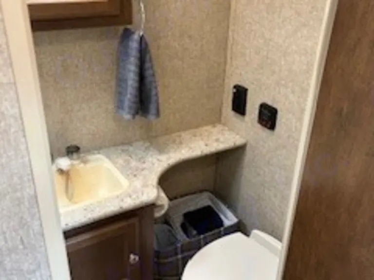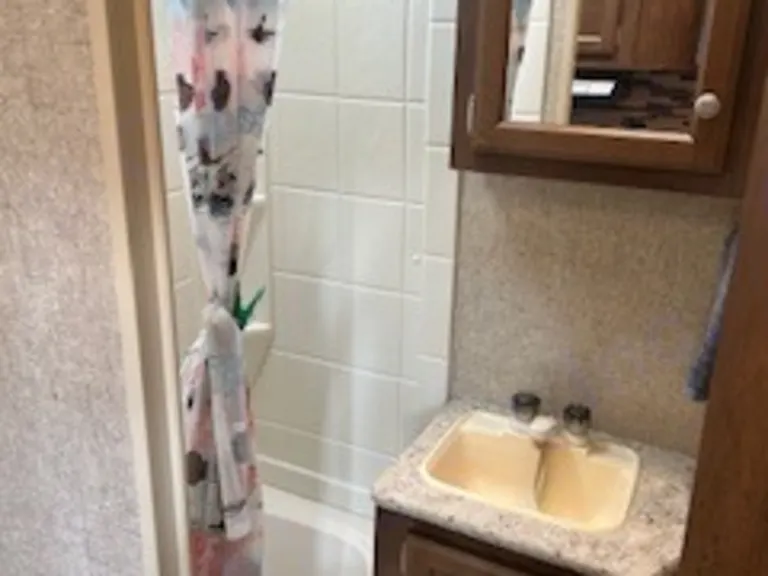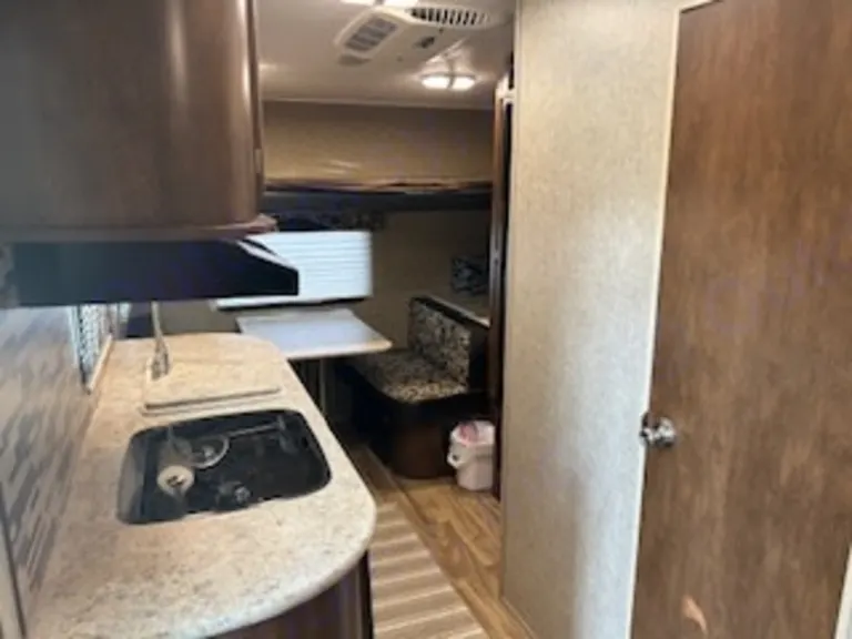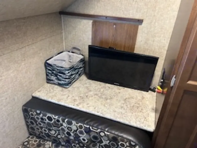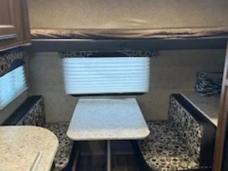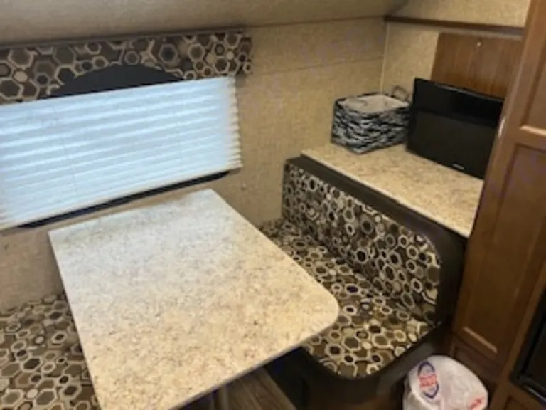 - Storage Galore: Under the bed and dinette, cabinetry, and pass through from the outside.