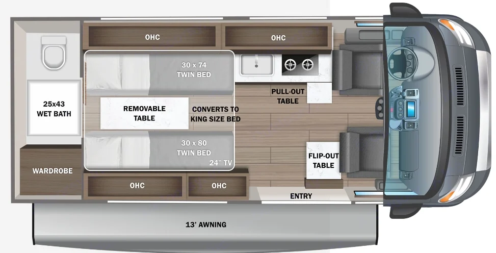 The bathroom, the refrigerator in the kitchen sink where the key features which we utilize the most and appreciated having on our camping trip. The vehicle handled very well.