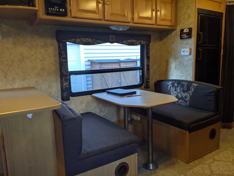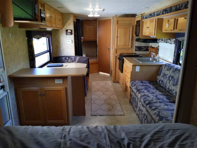 This camper at 30ft and only 6000lbs is large package in a light load. It has weight distribtuion with Reese no sway, a rear camera, and brand new 2021 goodyear endurance tires. Once at location, the upgraded batterybank and double 30 lb propane tanks make boondocking or full hookups possible. A true queen bed and bunks make this a perfect family of four camper but the dinette and couch fold into beds too for an even larger crowd. The TV, DVD, and Radio all work off 12vt in case you are off grid. If plugged in, the AC and many 110 outlets are a great plus.What's includedCamper comes stocked with...