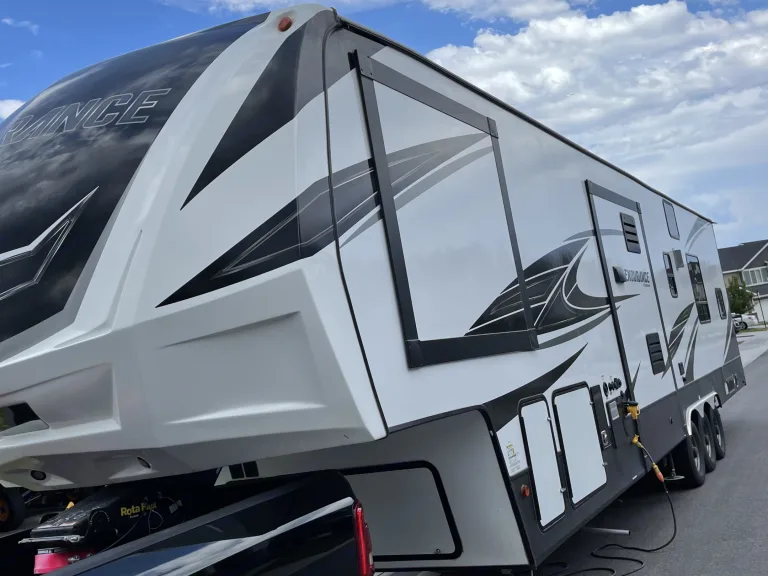 Are you ready for an adventure?! Our family loves spending time together and enjoying the beautiful outdoors with all the comfort of being home in our 5th wheel toy hauler! We have been all over Utah, Colorado, and Wyoming if you need any recommendations, we would love to assist you to find the perfect spot for you to enjoy The Dutchman 2020 Endurance!Where will you take your family next? We can drop off and set up, at the location of your choice, for a fee. Or if you prefer, it is equipped with an Anderson adapter gooseneck hitch, for easy towing, it pulls well and can be set up almost anywhere! However, please note, that it is not recommended to drive over 75mph and best to drive on maintained roads; it is low clearance and it is not built for long off road distances.Once you arrive at your selected destination you can let the relaxation begin! Our beautiful Endurance trailer has 3 slide outs, an electric power retractable awning and a party deck for expandable space for the entire family.Sleeps up to 7. Our master bedroom has an amazing upgraded queen size mattress, with plenty of storage for your family's belongings. There is a twin loft above the main living space and in the garage we have queen bunk beds. Pillows and linens for each of the beds can be added on to the rental agreement for a small fee or feel free to bring your own from home.There are 2 bathrooms, the front bathroom is equipped with a full shower, with sliding glass door, a petite vanity with storage below and behind the mirror. There is a half bath in the garage that is convenient with a larger family like ours. Please note, the sewer system in our trailer is not suitable for anything except toilet paper. Not only will a sewer clog ruin your vacation, there will also be a fee added for items disposed of improperly. Our trailer is equipped with an outside shower for easy cleanup before entering the trailer.The kitchen is spacious and has plenty of room to prepare a family meal. Ample size fridge, that will keep your food nice and cold during your vacation. 3 burner stove, a medium size oven and microwave. Also included in our kitchen is silverware, cookware, plates, bowls and cups, plastic ware, paper plates, plastic cups, knives, measuring cups, storage bowls, dish rags and kitchen towels. We have a few small appliances that can be added for your vacation as well, please see add-ons for more information of what we have available.The seating area is a very comfortable leather couch, with 4 reclining chairs, the outer 2 chairs also have a heated massage function, which feels amazing after a long hike. There is also a stowable table that sets up in front of the couch. We enjoy playing games in the evening or watching a movie together before bed. We have a small selection of DVDs and games for your family to enjoy, see picture for what we have included on the trailer.Our trailer is also equipped with outdoor speakers, 2 A/C units, solar hookups, on board generator, 2 propane tanks, 15 foot garage for all your outside toys that your family would like to bring along, 140 gallon fresh water tank, 80 gallon grey tank, 80 gallon black tank, 30 and 50 amp connectors with surge protectors, 2 rolls of toilet paper, 1 roll of paper towels, 2 hand soaps, and garbage bags.We are a no smoking family, any smoking evidence found will result in a fee. We do allow pets, we know they are like family, however please let us know when booking, there is an additional pet cleaning fee. Our trailer is your trailer, please help us keep it maintained so we can all enjoy it for years to come!5th wheel toy hauler with Anderson adapter for goose neck. Great trailer, pulls well, clean and maintained.Party deck