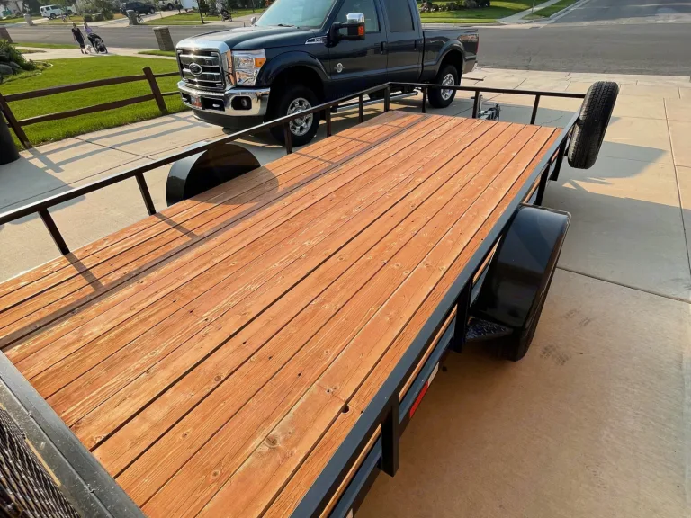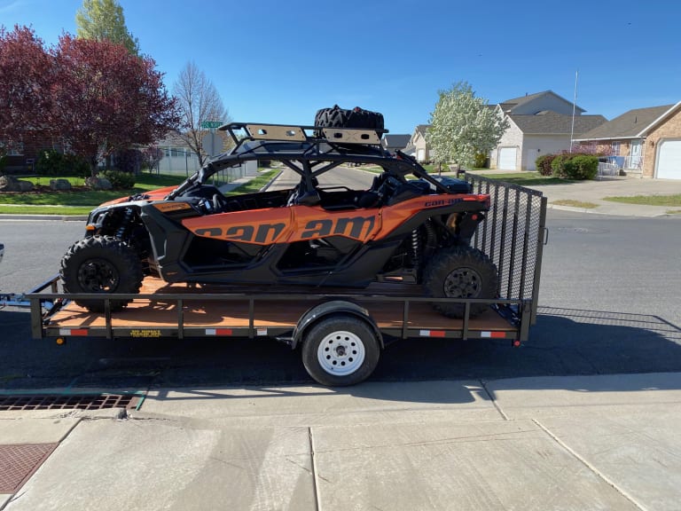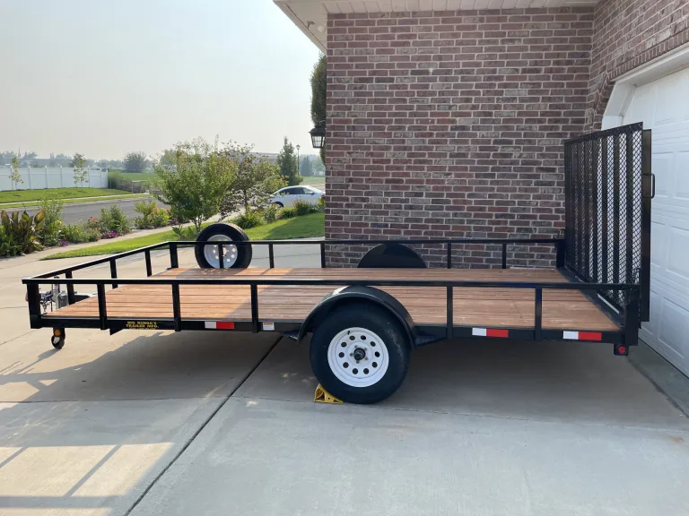 2020 Big Bubba 7' x 14' Utility Trailer with wooden deck, 4' Mesh Drive-On Ramp, and recessed LED lighting. 3500 pound axle. Virtually brand new trailer. It has 4 welded tie-down hooks and a spare tire. I've used it to haul my Can Am Maverick Max (4-seater) as well as 2 tons of mulch (by laying a tarp on the deck). It has a 4-pin flat wiring harness. Great trailer for moving, hauling a vehicle or motorized toys, etc.Other things to notePlease do not use if for hauling chemicals or vehicles that may leak fluids onto the wood decking.