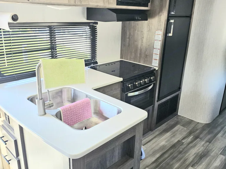 Welcome to your home away from home! Our cozy, modern RV is the perfect getaway for families or groups, comfortably sleeping up to 10 people. With a spacious double slide-out design, there’s plenty of room to relax—whether it's the kids enjoying their own play-and-sleep area in the back, or adults unwinding in the private master suite up front. You'll love the full bathroom with a shower and toilet, plus the convenient separate entrance from outside—perfect for those late-night campfires without disturbing anyone inside. Whether you're hitting the road or settling into a peaceful campsite, this RV is ready to help you make lasting memories.What's included• Stove