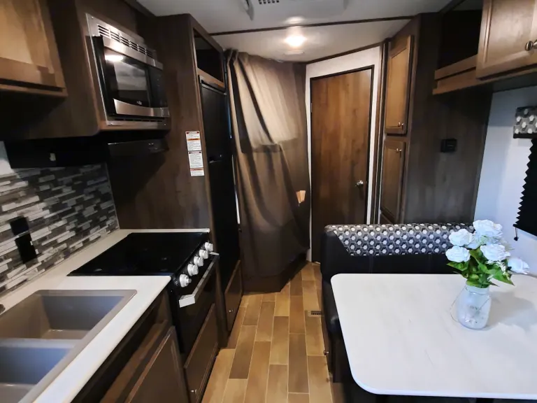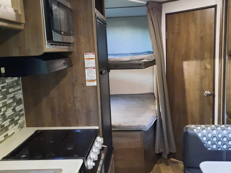 this 25ft cozy camper offers easy to use systems that will have you ruling your vacation like a pro. make memories that will last. while you have the comforts of home. this camper has a 32inch tv, queen size bed, radio with Bluetooth, bunk beds for the kids, full bath with shower. microwave, coffee pot, full kitchen with cookware and much more.