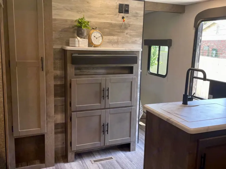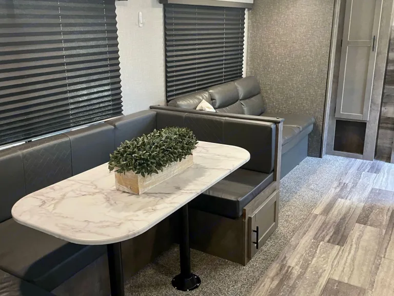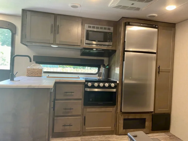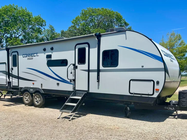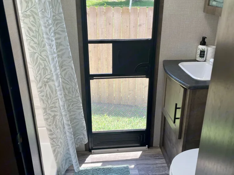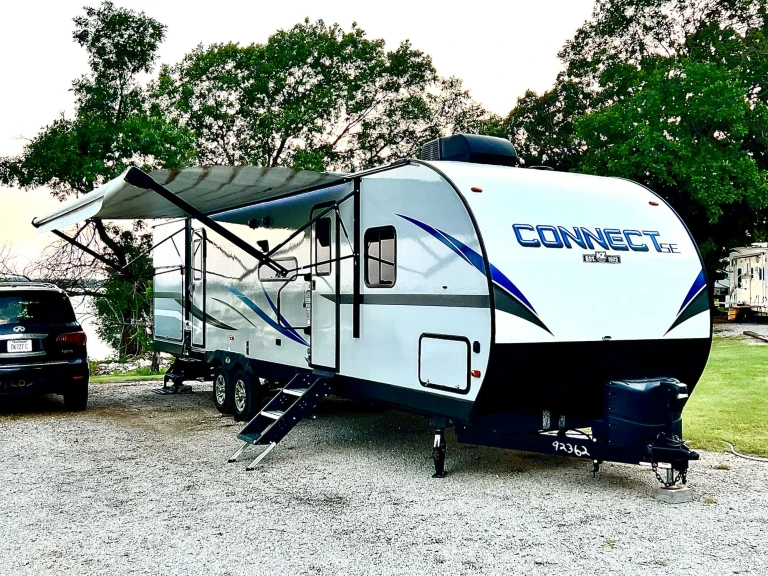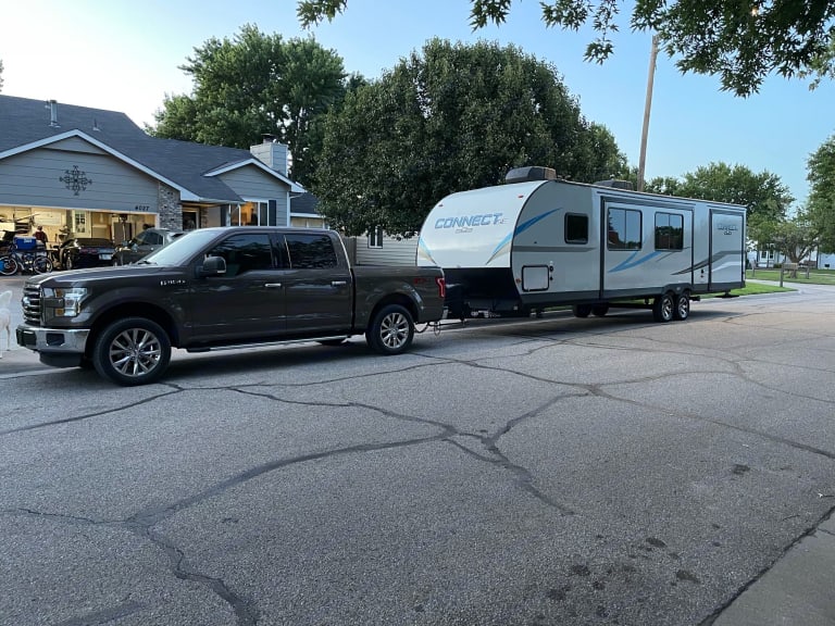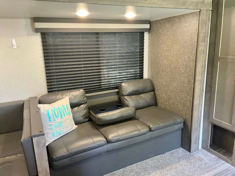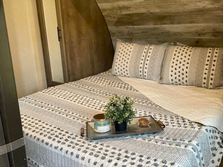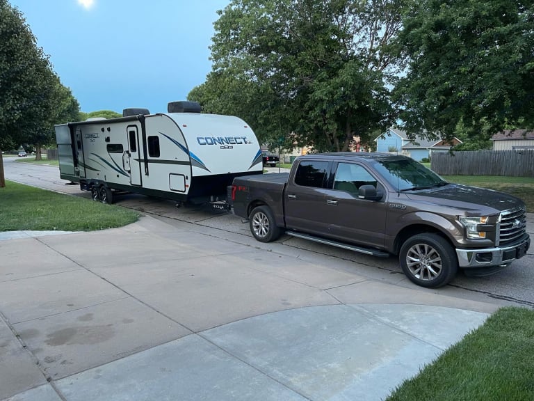 One of your biggest campers that is still 1/2 ton towable! Come enjoy camping with all the amenities of home! Separate bunkhouse with table for the kids! Queen bed for mom and dad with sliding barn door for privacy. Modern design scheme with gray/brown color hues. 2 a/c units keeps everyone cool in the summer heat! Standup shower with skylight is surprisingly roomy! Additional outdoor kitchen makes everything easier! 18ft electric awning provides much needed shade while sitting outside listening to music over the outdoor speakers! It really is quite the experience renting a trailer and we strive to make it an amazing lasting memory!What's includedQueen bed gets a clean fitted sheet. Extra blankets on board. Keurig coffee pot, silverware and cookware. Towels in linen closet.Other things to noteTowable for most 1/2 ton trucks. Sway bar/stabilizer hitch included. Should have some experience towing large/long trailers.