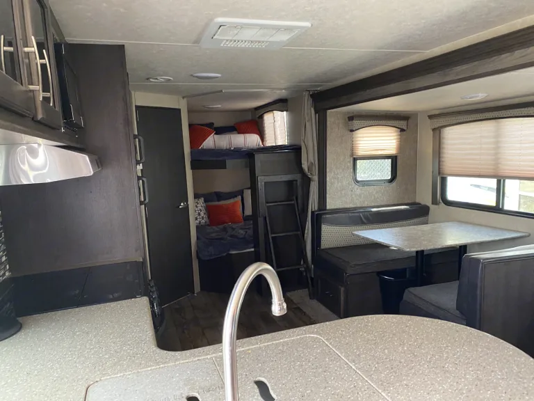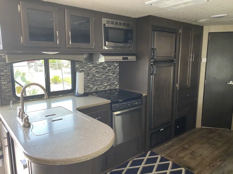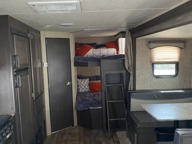 27 foot travel RV trailer sleeps seven. Refrigerator, stove oven, microwave and heater and air conditioning. Major holidays the nightly fee is double only on the holiday date.What's includedCamping chairs, stove, microwave, AC, pots pans, silverware, plates, cups, coffee maker, refrigerator.
