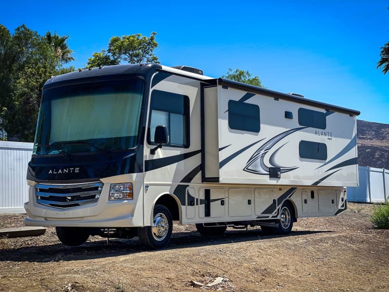 2023 Jayco Alante Bunkhouse 29F. Seats and sleeps 8 comfortably. Hit the outdoors with the Whole family in comfort and luxury! Book today!What's includedRV toilet paper, full fresh water tank, fresh linen, full propane on internal RV, empty external propane tank, dish soap, hand towels, and sanitary essentials.RecommendationsCamp at KOA Veil Lake, Lake Elsinore, Lake Skinner, Diamond Lake, Lake Hemet, or Lake Paris for some true outdoor fun! (Free delivery if you plan on camping those locations!)Other things to noteLevel the RV before using slide outOutdoorsy recommends we warn customers to minimize awning use and if possible use external canopy instead as awnings break easily and are costly to repair.If connecting at a campsite, verify you are not using reclaimed water for your clean water tanks.When flushing black and grey tanks, be sure to flush black first then, when empty, close the black tank and flush the grey water.If new to Class A RV’s, YouTube some tips and tricks as driving a large rig may intimidate even the most confident drivers.Remember to set your mirrors to your comfort before driving.Remove levelers and close slide out before driving.Be cognizant if height of vehicle, obstructing lines or trees as you will be liable for any damages.Only use regular gas.Please no smoking.Be safe and have fun!