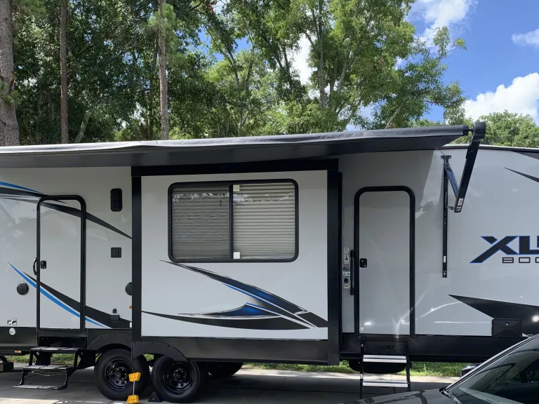 2021 XLR bunkhouse for your family adventures. Everything included just bring your suitcase. Two bedrooms including rear bunkhouse with two queen bunkbeds and queen bed in master with upgraded plush mattress. Two bathrooms , private master bath with shower and half bath in bunkhouse. Two slides, one in living room and one in master. Recining sofa, with heat and message. Fireplace in living room with 50 inch TV. Power awning with LED lights.Included for free