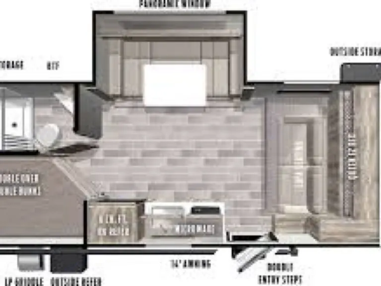 This beautiful trailer is ready to go. It easily sleeps 6 but with double bunks your kids could easily share with a friend to sleep up to 8! The main murphy bed folds up to create additional seating on those wet rainy days, while the slide out provides plenty of entertaining space! Outdoor fridge, cook top and awning are must haves! Get ready to create amazing family memories.Hitch/Tounge weight: Trailer is 480lbsDry weight/towable weight: Trailer is 3780lbsWhat's includedKitchen: