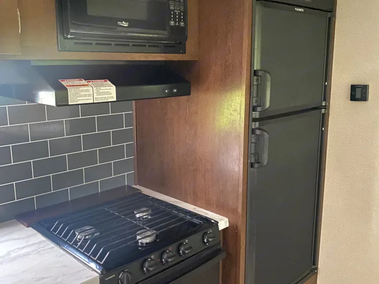 Equipped with a sink, mini fridge and oven top located right next to an extendable awning!The interior kitchen is quipped with a microwave oven, gas stove top and oven, and a stainless steel sink, you'll have everything you need to cook up culinary delights during your travels. The fridge and freezer provide ample storage space for your groceries, ensuring that your ingredients remain fresh throughout your journey.When it's time to unwind and enjoy the scenery, the retractable awning provides shade and protection from the elements, allowing you to relax in comfort. Whether you're enjoying a meal outdoors or simply lounging with loved ones, the awning creates the perfect outdoor living space.This RV is designed for convenience and practicality, with features that enhance your overall travel experience. The stainless steel sink and high-quality appliances add a touch of luxury to the kitchen area, making meal preparation a breeze. The 8-person capacity ensures that you can bring your family and friends along for the adventure, creating lasting memories together.Don't miss out on the opportunity to embark on incredible journeys with this well-appointed RV. Experience the freedom of the open road while enjoying the comforts of home with our meticulously designed and fully equipped recreational vehicle.Water and refrigerator work on both electric and propane. What's includedWeight distributing hitchRecommendationsTruck you will be using must be able to tow 8,000lb and has a trailer break box installed into the vehicle.