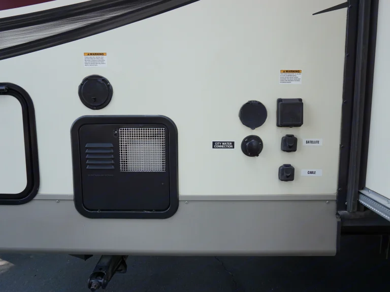 Continuing around, a slide out holds a jack-knife sofa, a table in front and overhead corner shelves. Across the front, a queen bed has an overhead cabinet above it. The kitchen along the entry wall holds a refrigerator, two burner cook top, double sink, overhead microwave and nice size overhead cabinets. Outside across the front, you will find full pass thru storage, Power awning and outside speakers.Power Patio Awning, Black Tank Flush, 30 Amp Service, Hide-a-Bed, Day/Night Shades, Microwave Oven, 6 Cu. Ft. Refrigerator, One Slide (Couch), 6 Gallon Water Heater, Gas/Electric Water Heater, Direct Spark Ignition, Laminated Fiberglass Sidewalls w/Aluminum Structure, Spare Tire, Rubber Roof, Infused Colored Fiberglass, Manual Leveling Jacks, Aluminum Wheels, Stereo, Speakers in Ceiling, 14" Tires, Roof AC. All ready to hit the road and follow you where ever adventure is calling!