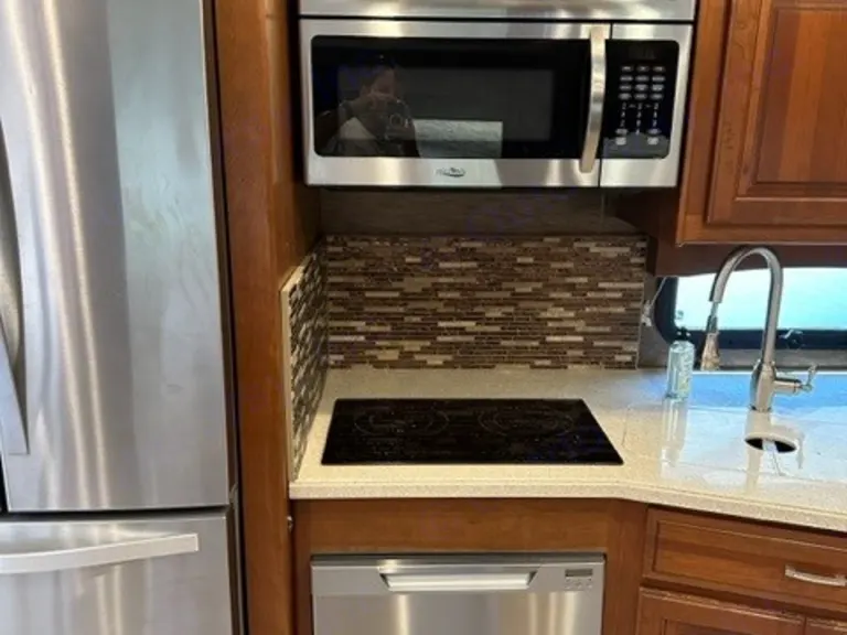 Full size refrigerator, dish washer, washer and dry, central vacuum, includes two hitches, bike rack or motorcycle rack, 10,000lb towing, 2 ice chests, 6 camping chairs, propane fire pit, BBQ, outside TV, all smart TV's with Wi-Fi. 3 AC units, heater, Insta hot water heater, tile floors, leather couches, new batteries. What's included2 coolers, 6 camping chairs, sheets and blankets, pots and pans, plastics utensils and cups, coffee makerOther things to noteNo smoking